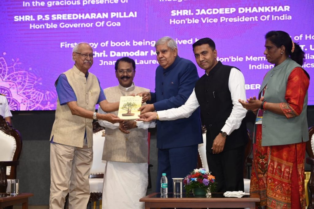VISITING Vice-President of India Jagdeep Shankar was in Goa on November 9, 2023 for the concluding ceremony of the 27th National Games. While here he emphasised the need to have meaningful and fruitful dialogues, deliberations, discussion and debate to strengthen democracy of the nation. This was while he was addressing the gathering after releasing the 200th book “Vaman Vriksha Kala” (Malayalam) authored by Governor of Goa PS Sreedharan Pillai at New Durbar Hall, Raj Bhavan.
