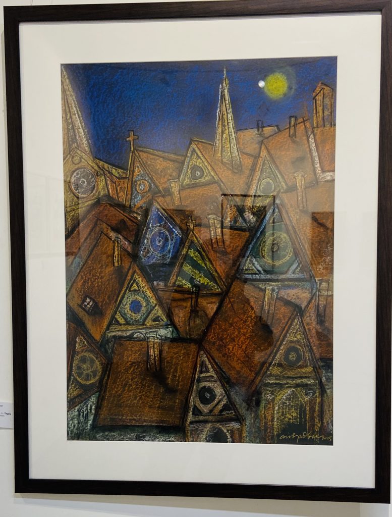 There is also a persistent nostalgia that courses through Poddar’s landscapes — a longing for vanishing streets, riverbanks and older civilisational calm. While this lends his work a gentle melancholy, political conflict and social rupture rarely enter his pictorial frame. The violence of history seems to dissolve into lyric remembrance. Whether this reflects healing, aesthetic choice or quiet withdrawal from harsher realities remains open to interpretation.