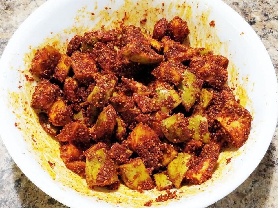 A packet of say a quarter kg miskut is priced currently Rs50 or is it more now, and I have to enquire if it is too full of red chilli and what chilli have you used (Kashmiri chili or the fiery Canacona chili), what oil, what mango breed? Thin-skinned tart wild mango with small seed, tender no shell mangoes are the best. Thick-skinned flavorless mangoes with big stones within have hardly any flesh to take delight in!