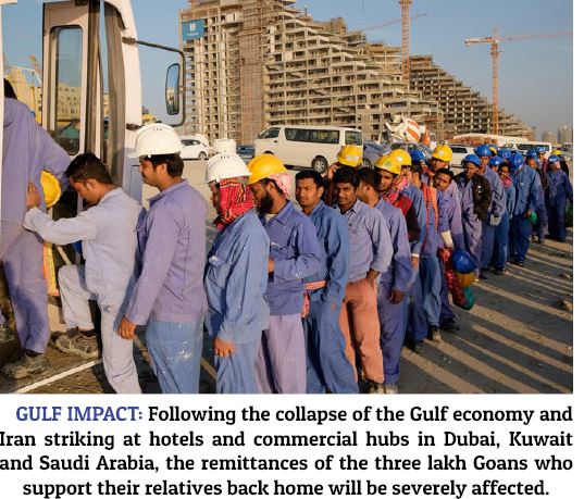 Economy, Mar 07- Mar 13, 2026 March 6, 2026The Goan economy is totally dependent on the services sector comprising tourism, shops & establishment and digital delivery workers and in more recent years employees of casinos. Goa has also been dependent on remittances of the three lakh Goans settled in the Gulf and this will be affected by the ongoing Iran strikes on the Gulf countries.